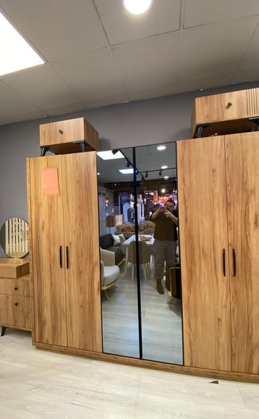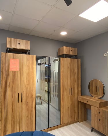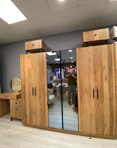 Ahşabın sıcak dokusunu modern tasarım çizgileriyle birleştiren Bahtiyar Yatak Odası Takımı, yatak odanıza doğal ve huzurlu bir atmosfer katıyor. Ceviz tonlarının verdiği samimi his, aynalı kapaklarla birleşerek hem estetik hem de fonksiyonel bir kullanım sunuyor.