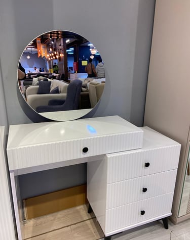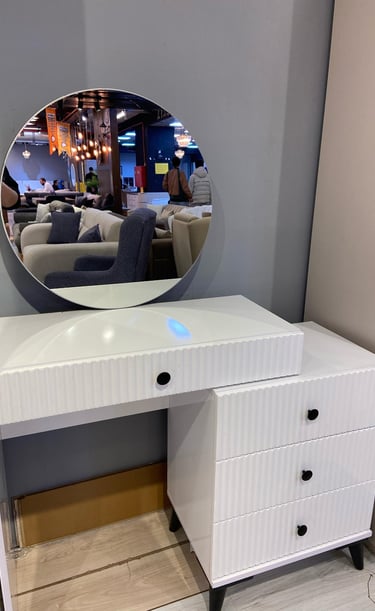 ✔ Şık tasarıma sahip şifonyer ve yuvarlak ayna