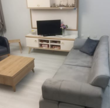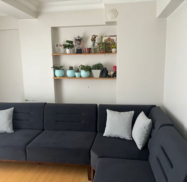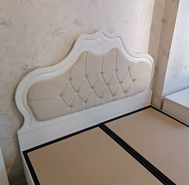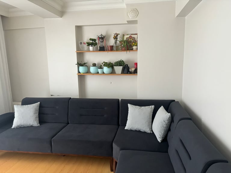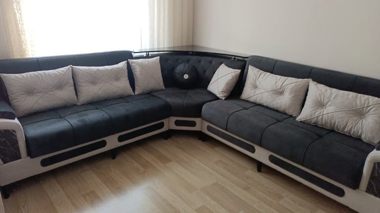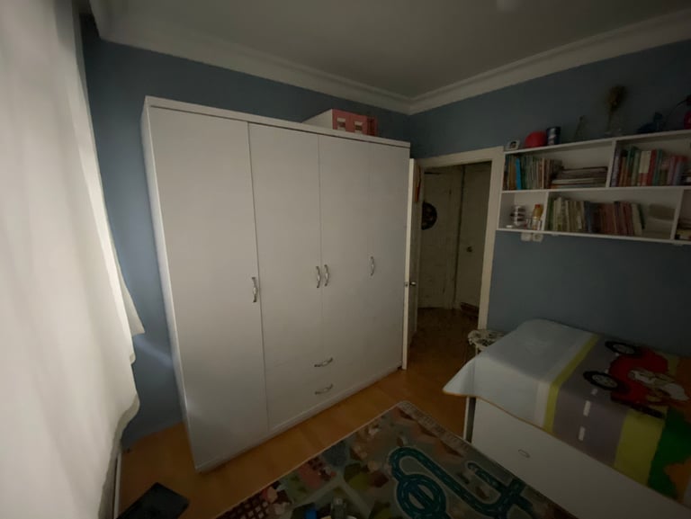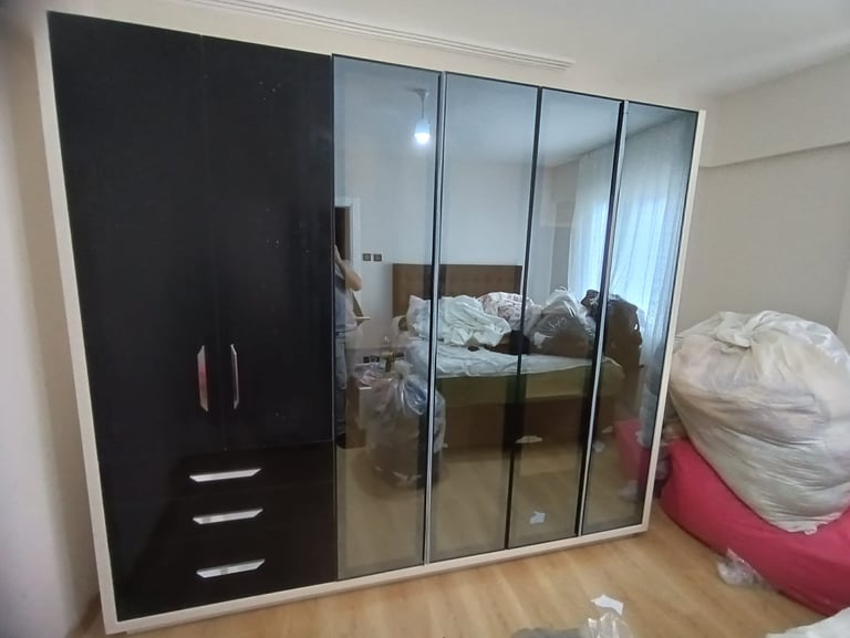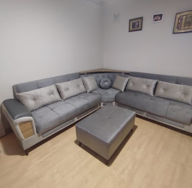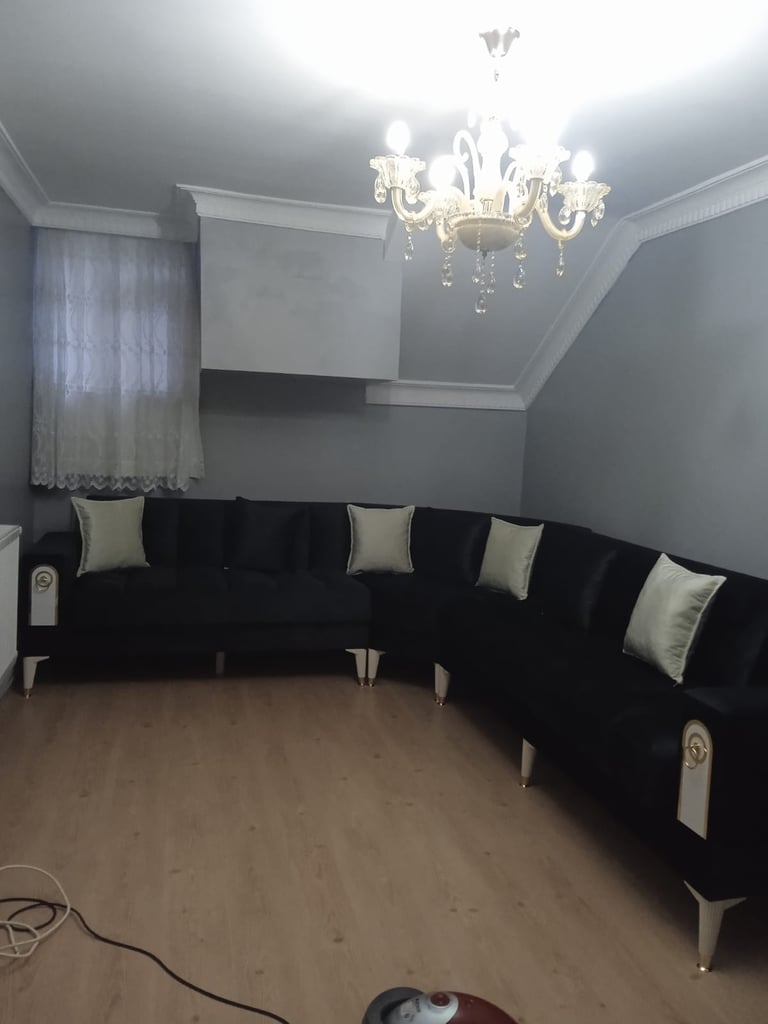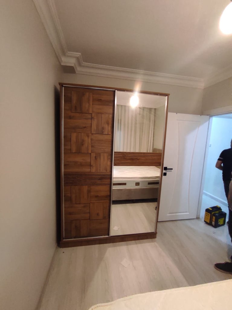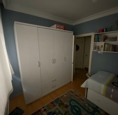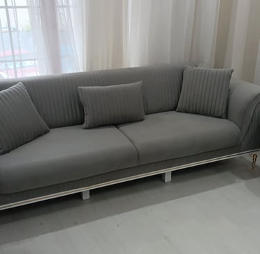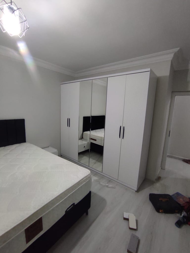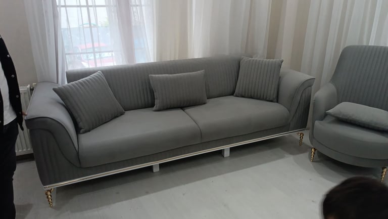 Yatak odası, koltuk takımı, masa ve sandalye.