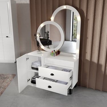 ✔ Şık tasarımlı makyaj masası ve aydınlatmalı ayna