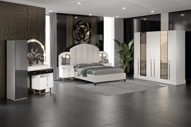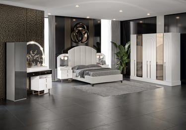 Royal Yatak Odası Takımı, çağdaş tasarım çizgilerini zarif detaylarla buluşturarak yatak odalarına lüks ve sofistike bir hava kazandırıyor. Beyazın asaleti, altın ve ayna detaylarıyla birleşerek mekâna derinlik ve ışıltı katıyor. Modern dokunuşlarla tasarlanan Royal, hem estetik hem de işlevsel yapısıyla göz dolduruyor.