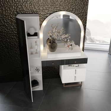 Aydınlatmalı, zarif aynaya sahip makyaj masası
