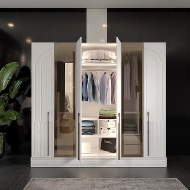 Geniş iç hacimli, cam ve ayna detaylı gardırop