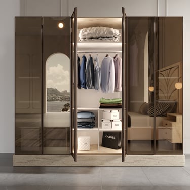 Bronz ayna detaylı, geniş iç hacimli gardırop